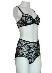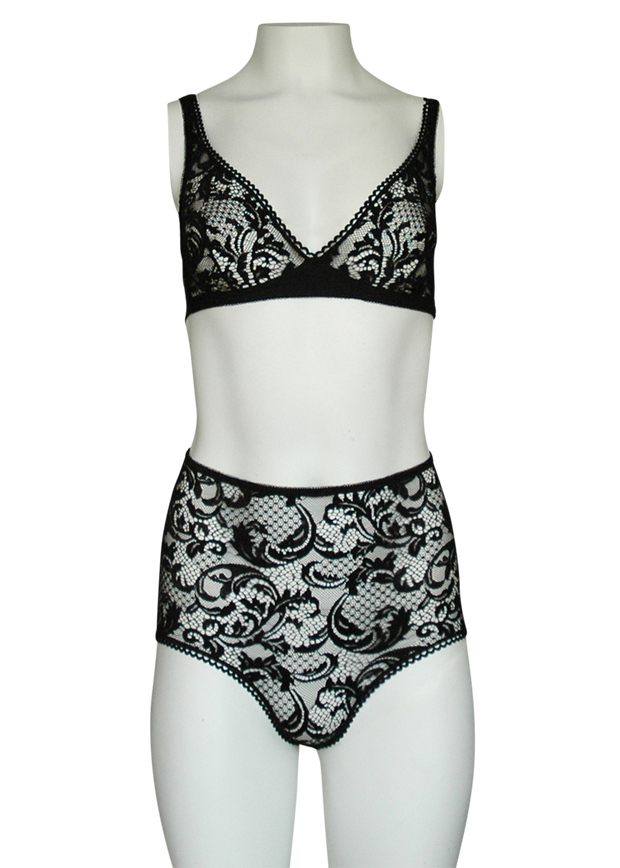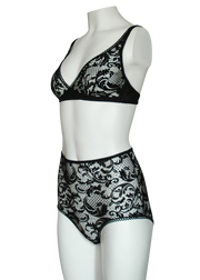 The Versailles High-Cut Brief is made with a luxurious stretch French Leavers lace providing a glamourous bohemian vibe with a flattering cut.