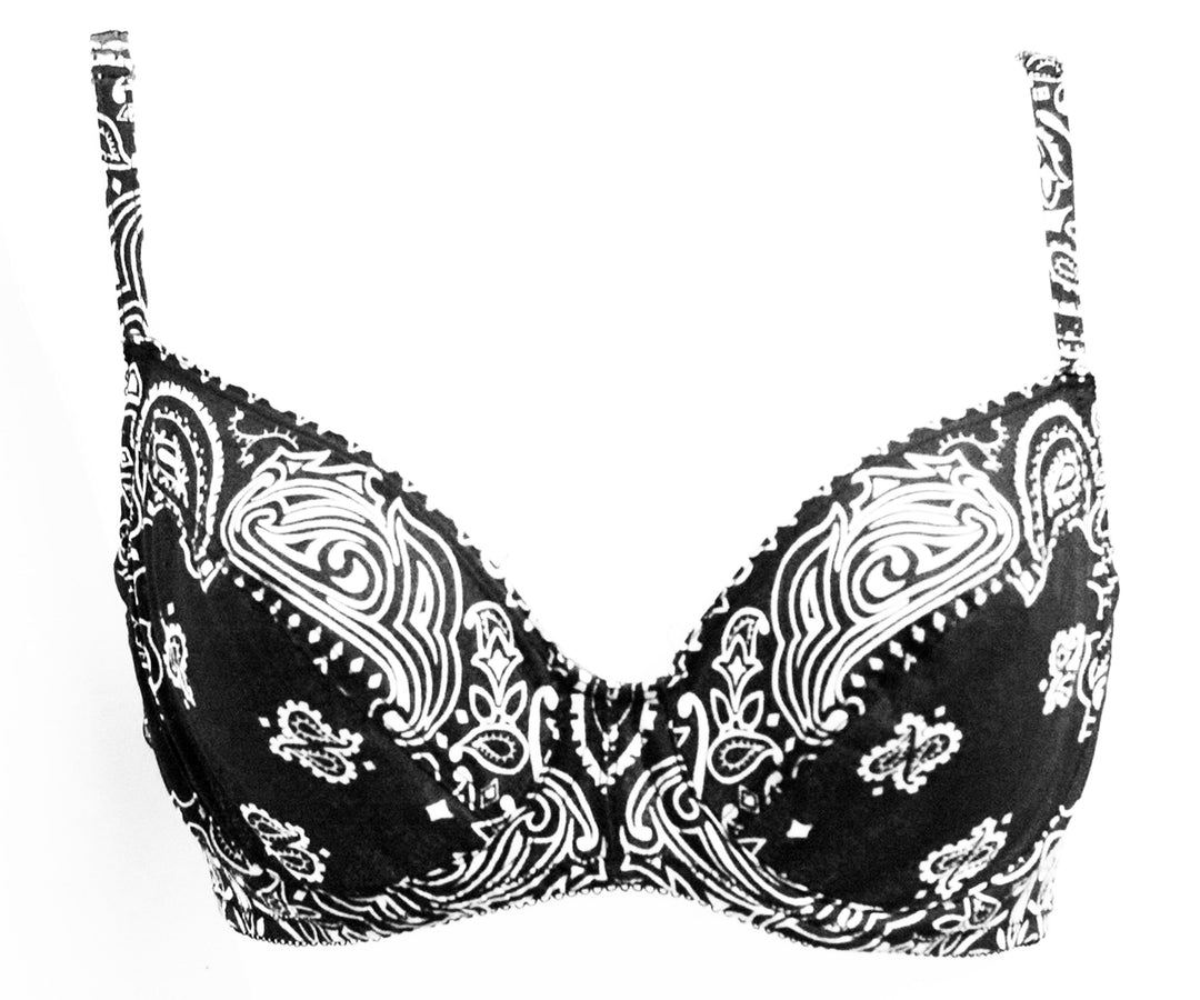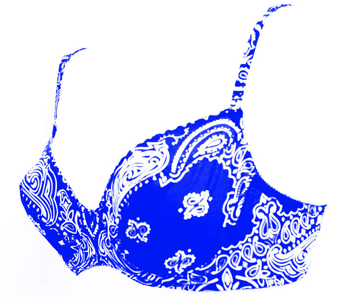 The Bandanna Print Bra is crafted from 100% cotton. The fresh design is precision-cut and strategically placed. Bandanna print is a fashion wardrobe must-have. Show off this interesting piece layered beneath a revealing blouse or dress.