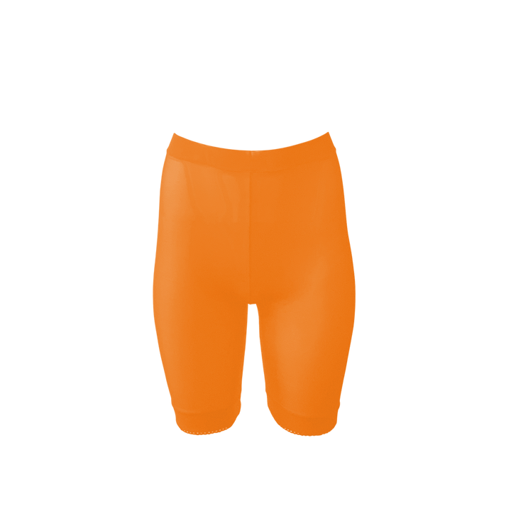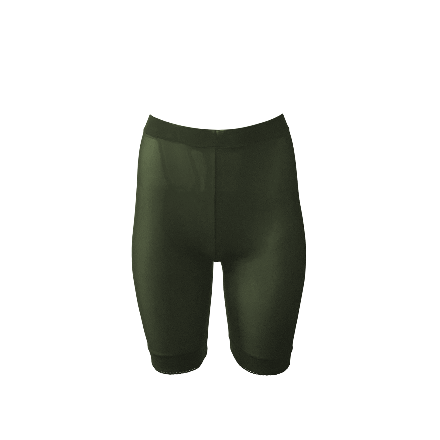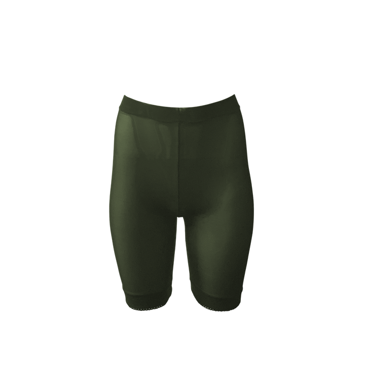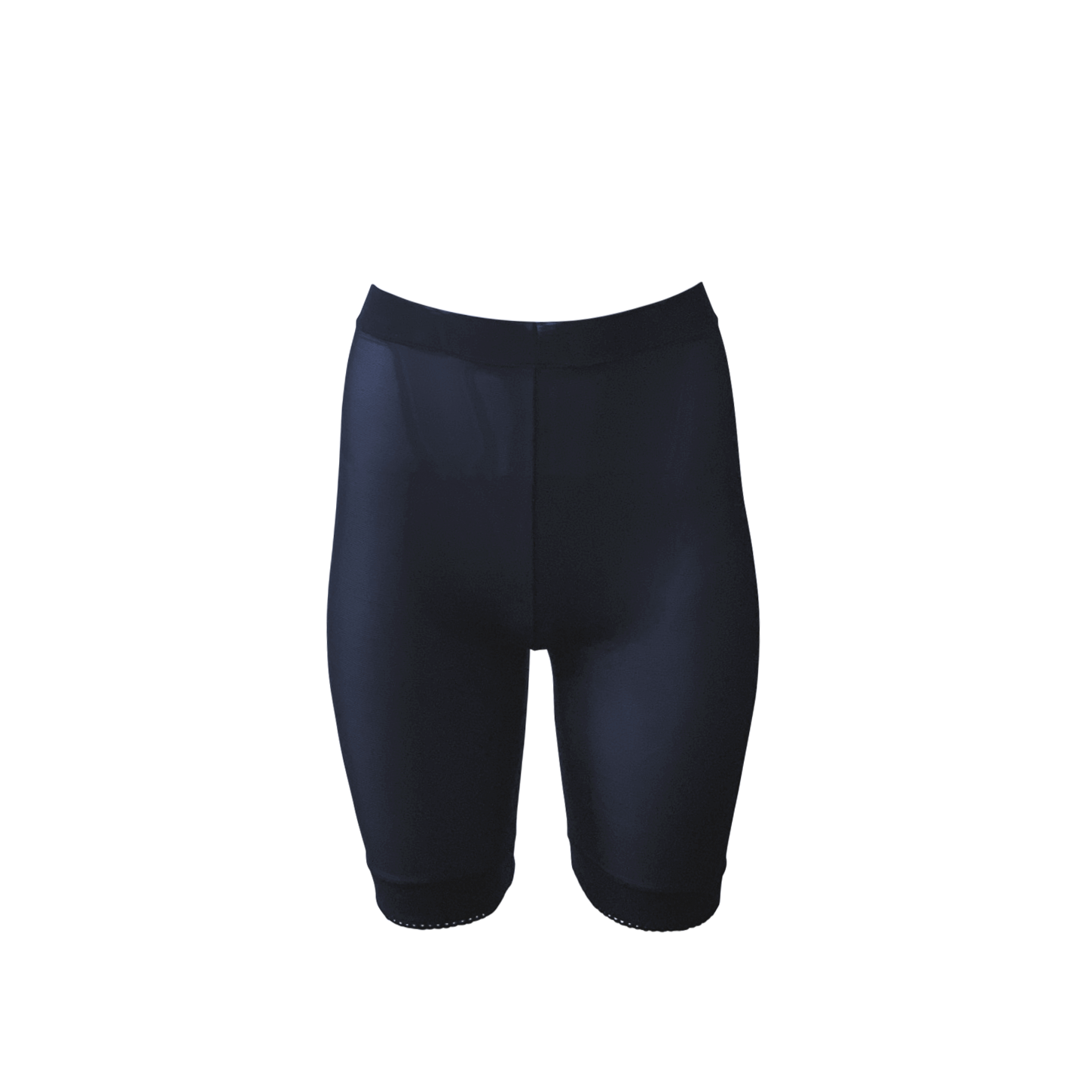 The Sheer French Tulle Bike Length Briefs are a sleek contouring style ideal to wear under clothing that requires smooth lines—featuring a non-roll-down waistband and legs that finish with a wide band that never cuts into the skin.