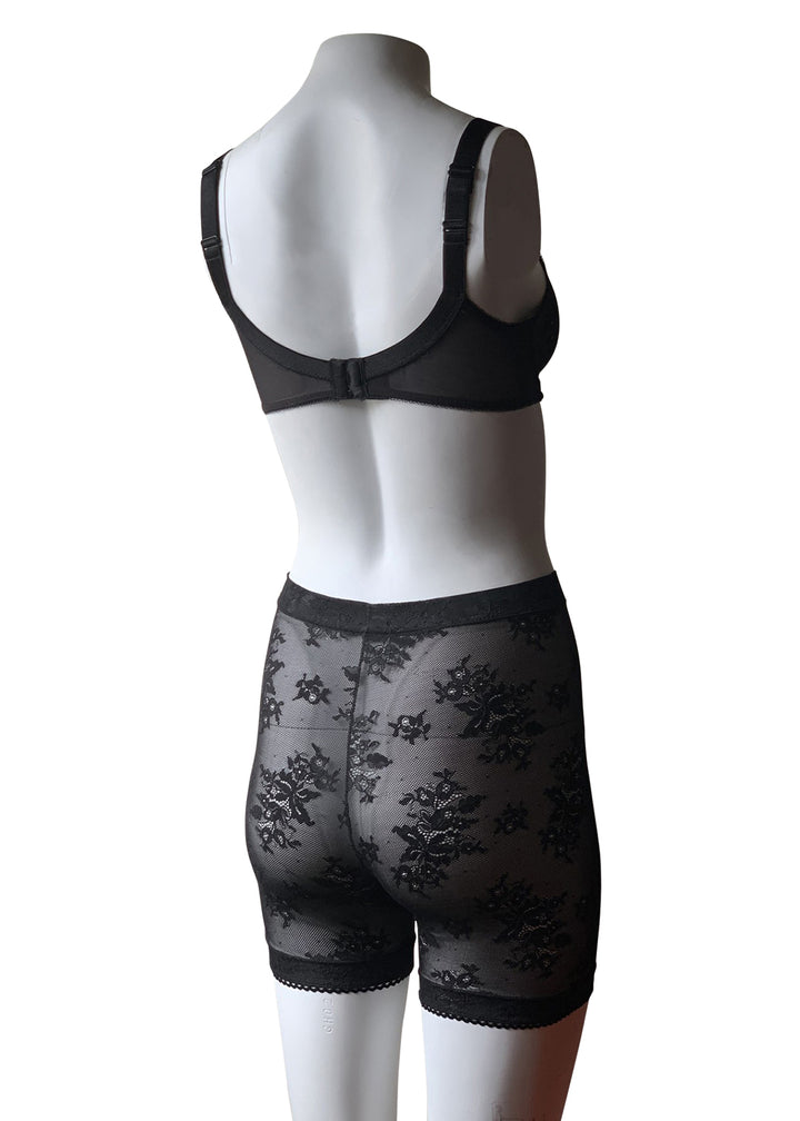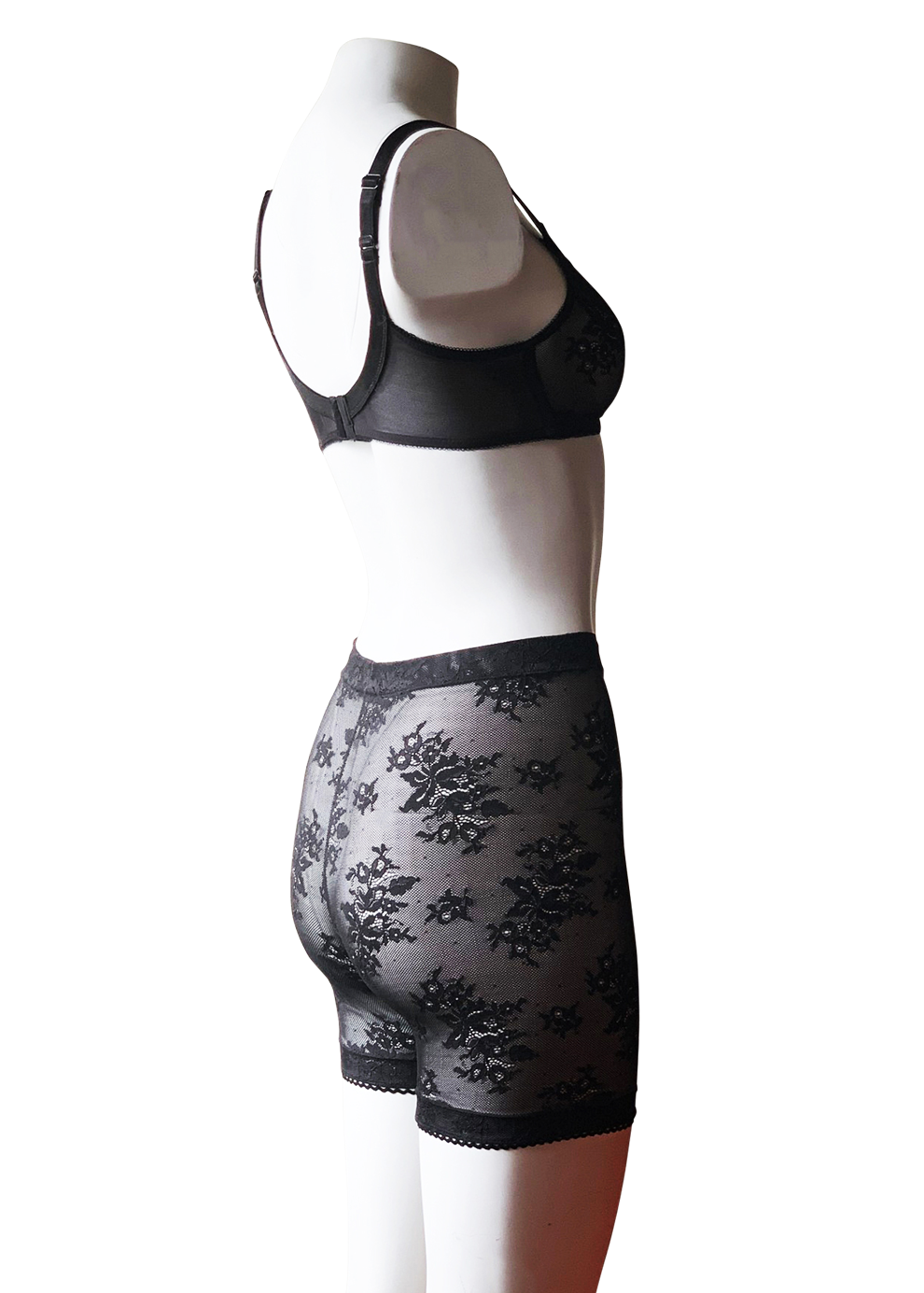 The Athena Bra is a full-cut bra with deep V-neckline and provides wire-free support. It is made in a French power-net featuring a luxurious floral bouquet. The sides and back are wide for fluid body smoothing lines. The straps are one-inch wide and never cut into your shoulders. The bottom band provides lift with a snug fit around the ribcage. The fabric is imported from Calais, France.