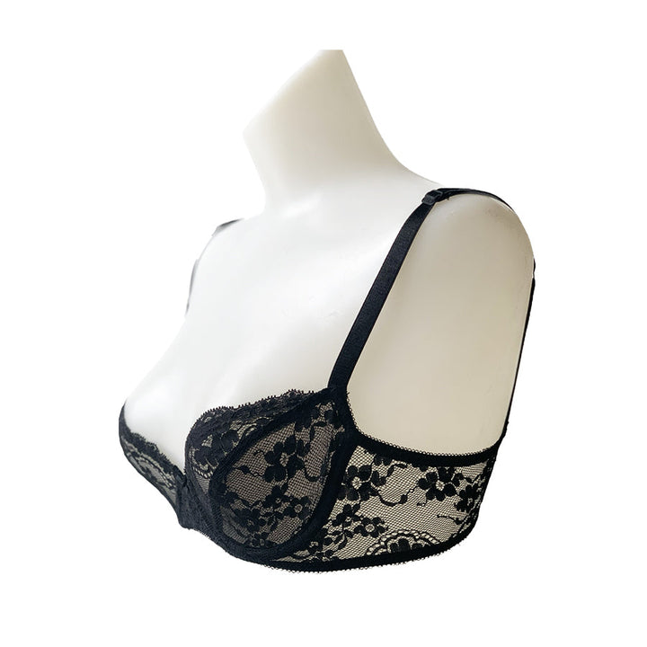 The Poppy Lace Demi Bra is made in French lace with a poppy flower design. Technically engineered to contour your silhouette, the bottom cup is lined with a double layer of French tulle for extra support and shaping. The scalloped-edge décolleté provides sultry details to reveal from beneath blouses or dresses.