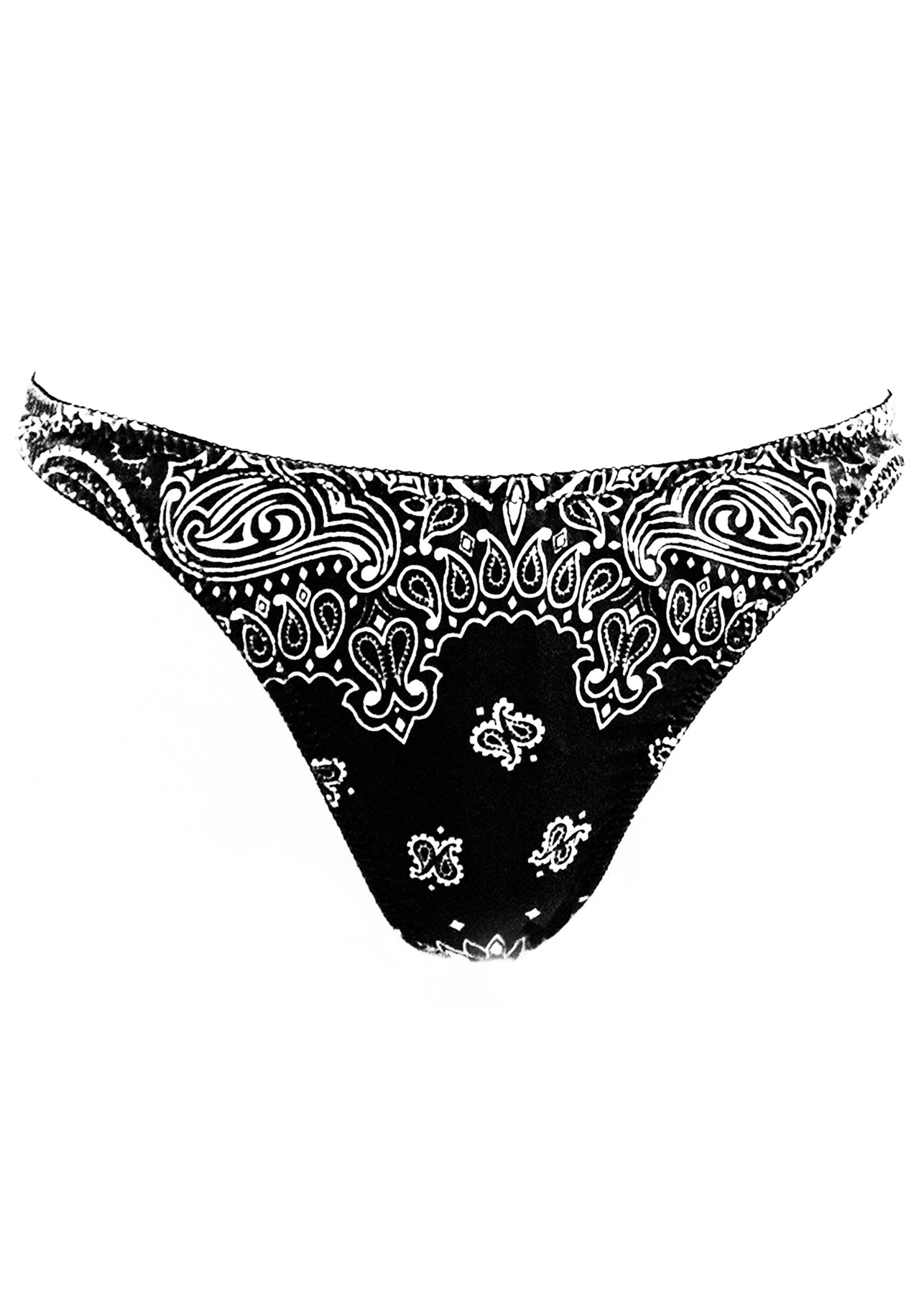 The Bandanna Print Thong features a crisp cotton fabric with a carefully tailored cut and strategically positioned pattern. This bandanna print is an essential addition to any stylish wardrobe.