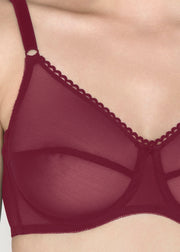 Sheer French Tulle 50s Bra in Maroon - Deborah Marquit