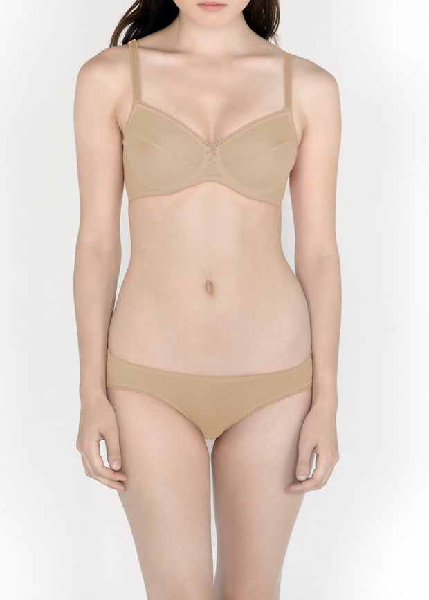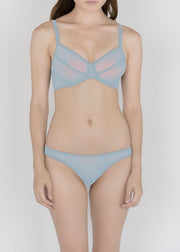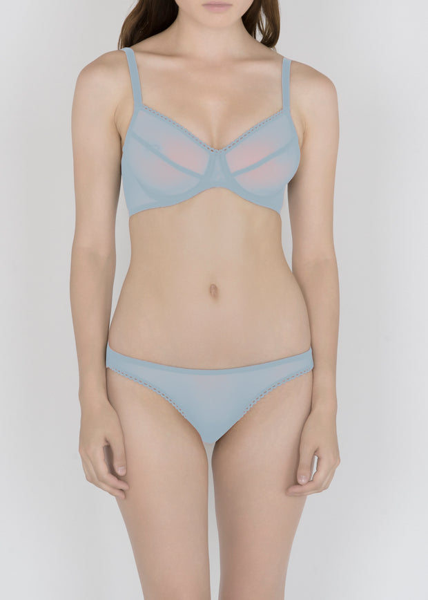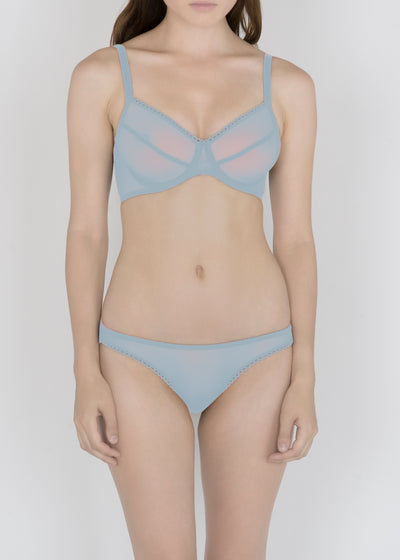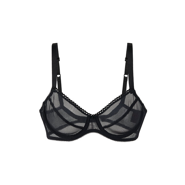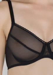 The Sheer French Tulle underwire bra is a classic silhouette that supports and contours the bustline with an unexpected lightness and is ideal for everyday wear. The décolleté is trimmed with a French scalloped edge and cups are lined with an inner side panel.