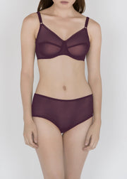 The Sheer French Tulle full brief features delicate scalloped-edge trims around the legs and gently contours the body for a naturally toned appearance. Pair it with a Sheer French Tulle Underwire bra, 50's Bra or Soft triangle bra for the complete set.